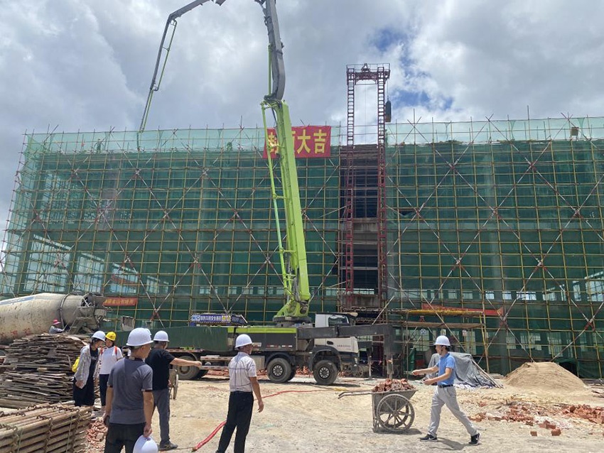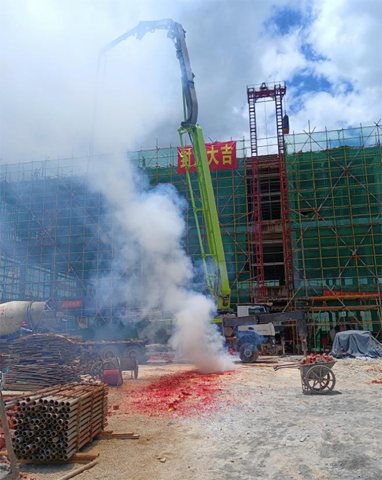 集團董事長肖愛樟、公司董事長王軍等領導參加了慶?;顒樱S著最后一車混泥土的澆筑完成,項目建筑主體順利完成封頂,施工現(xiàn)場鞭炮齊鳴,掌聲雷動,整個施工現(xiàn)場沉浸在歡樂的海洋中。封頂大吉!